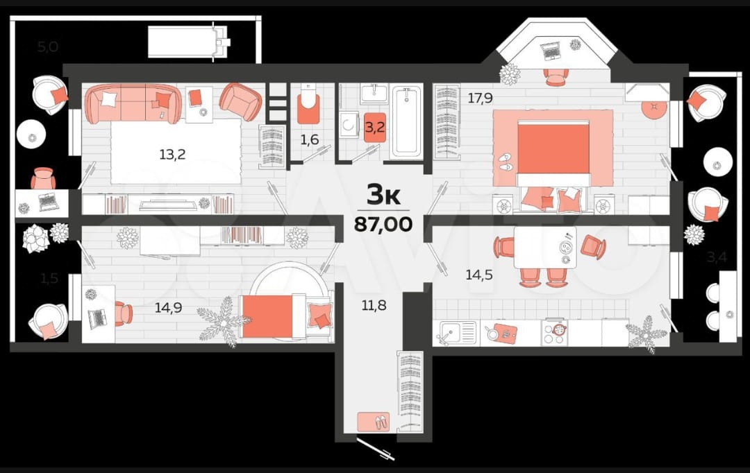 Количество комнат3-к квартира