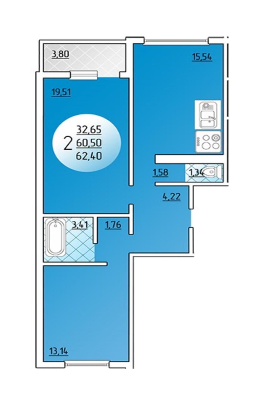 Количество комнат2-к квартира