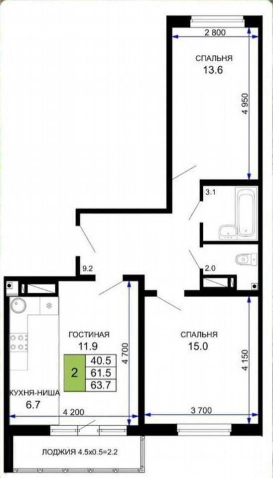 Количество комнат2-к квартира