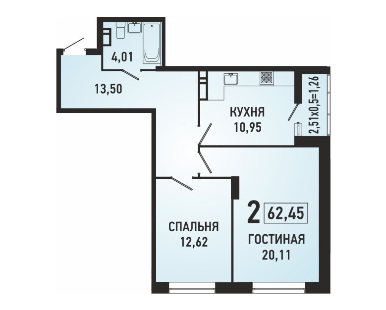 Количество комнат2-к квартира