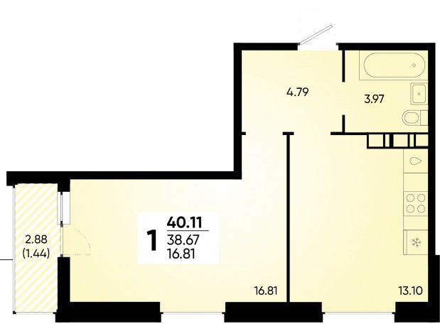 Количество комнат1-к квартира