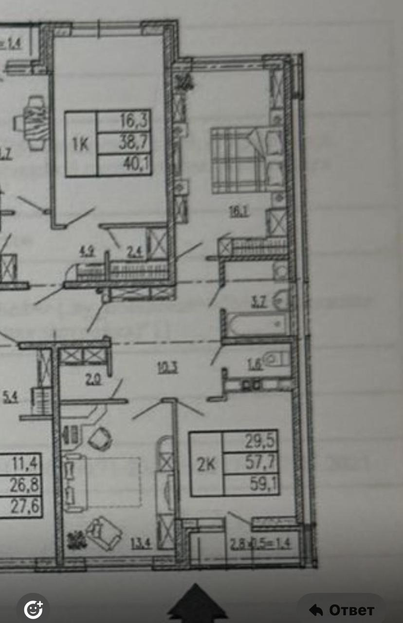 Количество комнат2-к квартира