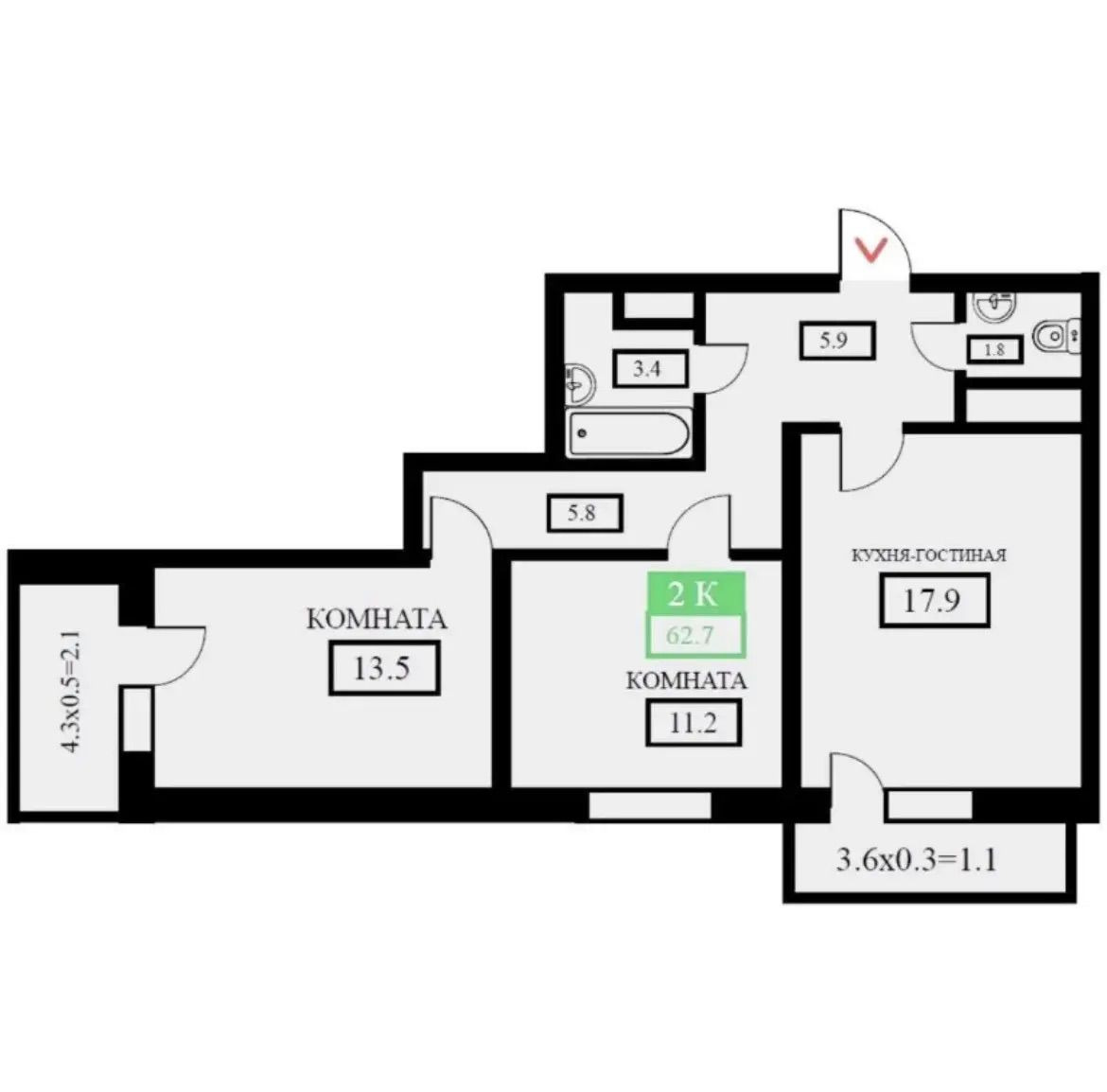 Количество комнат2-к квартира